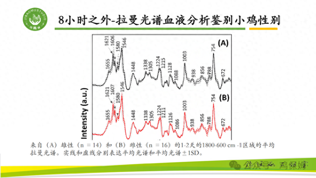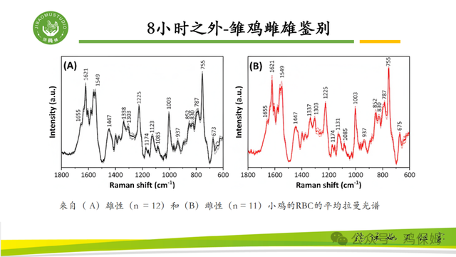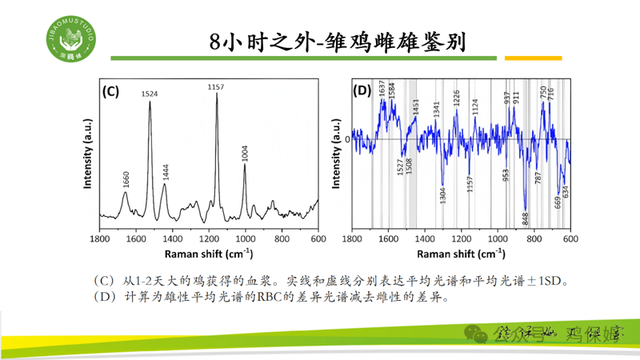 使用拉曼光谱法分析鸡性别的可能性。拉曼光谱是从全血及其成分中获得的,例如红细胞(RBC)和血浆,使用785 nm的激发波长从1-2天的小鸡那里收集。主成分分析(PCA)揭示了全血和RBC的统计学意义依赖性光谱变化,而血浆表现出较明显的依赖性。